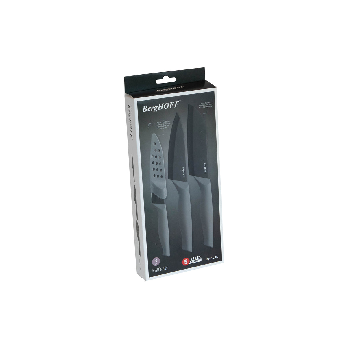 If you prefer to stick to a few all-rounders rather than building up an extensive knife collection, this 3-piece knife set is for you. It includes a paring knife, a chef's knife and a Santoku knife—three of the most important knives in your arsenal that will help you with 90% of all cutting tasks. These knives are easy to use thanks to their non-stick stainless steel blades and ergonomic soft-grip handles. As an added bonus, each knife comes with a protective sheath for convenient storage and added safety.