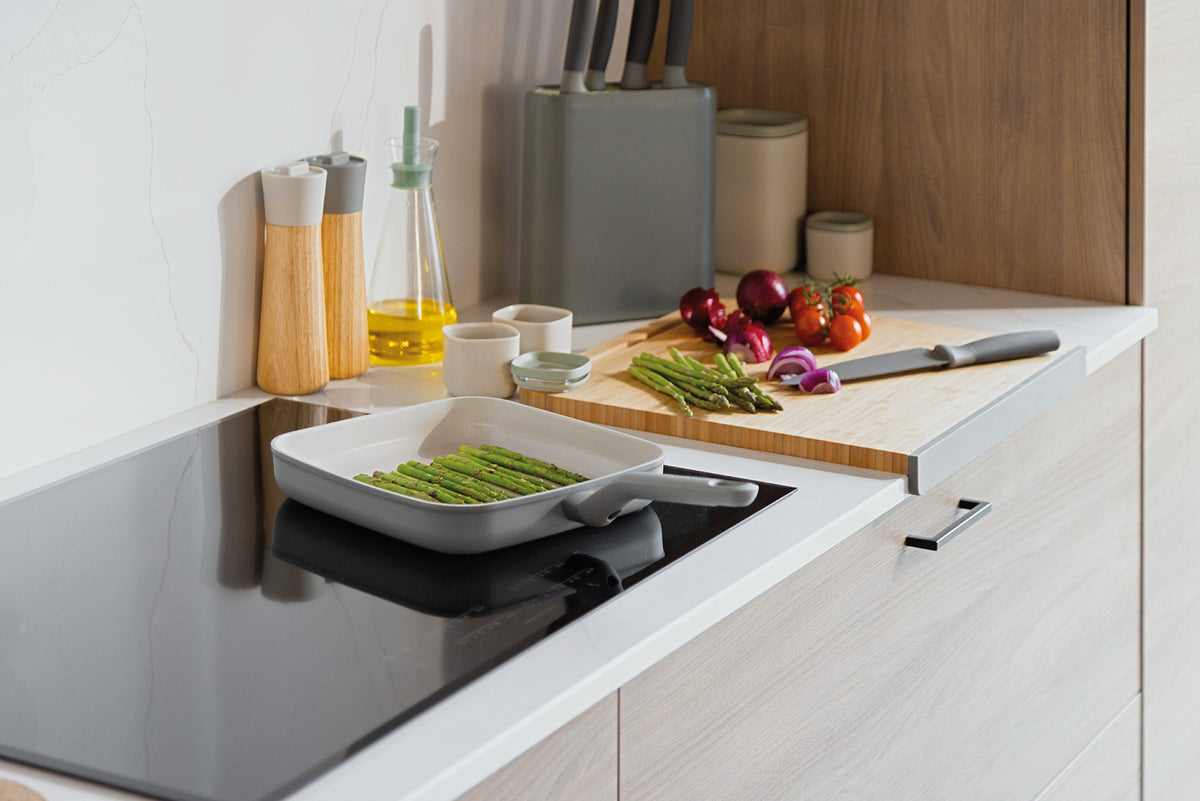 • Täysi levypohja, joka johtaa lämpöä nopeasti ja tasaisesti energiatehokasta ruoanlaittoa varten