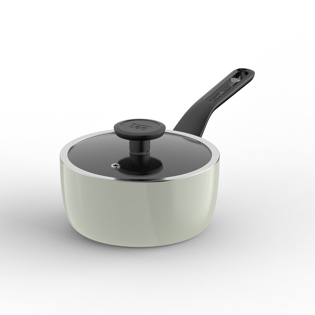 Valmista ruokaa itsevarmasti tämän monipuolisen 7-osaisen kattila- ja pannusetin avulla. Settiin kuuluu kastikekattila (18 cm), pata (20 cm), iso kattila (24 cm) sekä tarttumaton paistinpannu (24 cm), jotka on valmistettu kierrätetystä alumiinista tasaisen ja tehokkaan lämmönjaon takaamiseksi. Tyylikäs ja toiminnallinen setti sisältää terveen ja kestävän keraamisen non-stick-pinnoitteen, joka mahdollistaa ruoan helpon irtoamisen ja vaivattoman puhdistuksen sekä ruoanlaiton vähällä tai ilman öljyä. Jokaisessa osassa on kestävä lasikansi, jossa on ruostumattomasta teräksestä valmistettu reuna ja höyryventtiili, jotta voit tarkkailla ruokaa sen kypsyessä.