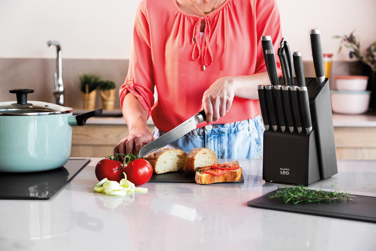 Leikkaa helposti sekä rapeimmat leivät että herkimmät tomaatit tällä ruostumattomasta teräksestä valmistetulla leipäveitsellä. Hyvin tasapainotettu veitsi on miellyttävä käyttää ja mahdollistaa erittäin ohuet siivut puhtaalla ja tarkalla lopputuloksella. Sen sahalaitainen terä leikkaa vaivatta kovan kuoren läpi vaikuttamatta valmiin viipaleen muotoon.